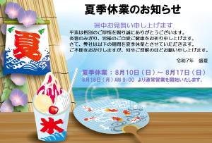 夏季休業のお知らせ(2025.8.10~2025.8.17)
